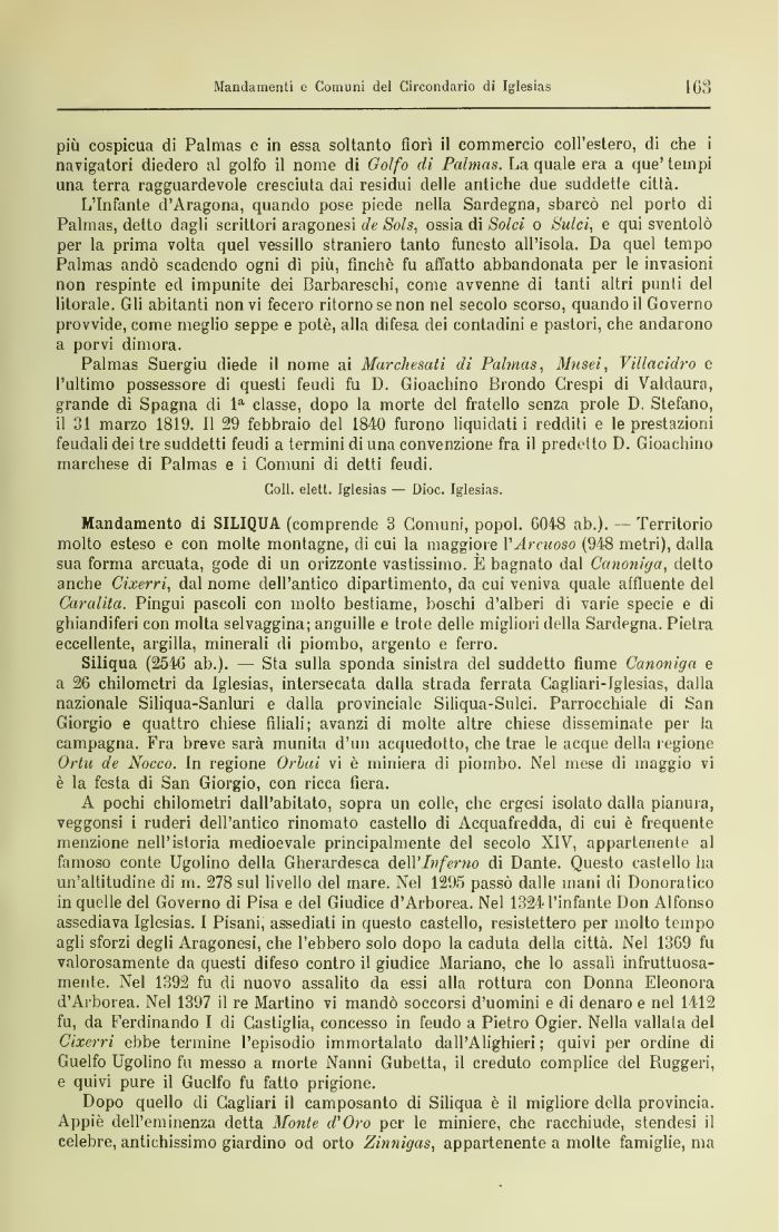 pi» cospicua di Palmas e in essa soltanto fiori 1 commercio coll'estero, di che i navigatori diedero al golfo il nome di Golfo di Palmas. La quale era a que'tempi una terra ragguardevole cresciuta dai residui delle antiche due suddette città.
