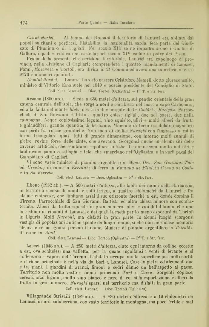 Coli, elett. Lanusei — Dioc. Tortoli (Ogliastra) — Pa T. e Str. ferr.