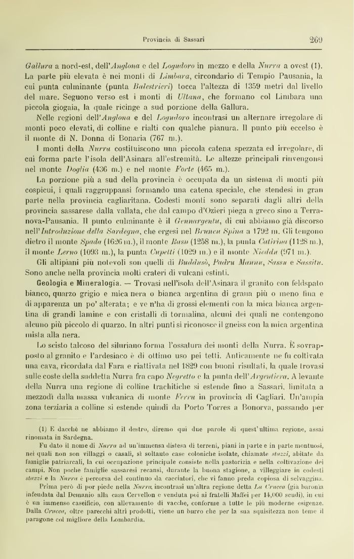Nelle regioni dell*Jj(gi»m e del Logudoro incontrasi un alternare irregolare di monti poco elevati, di colline e rialti con qualche pianura. Il punto più eccelso è d monte di N. Donna di Loriana (767 ni.).
