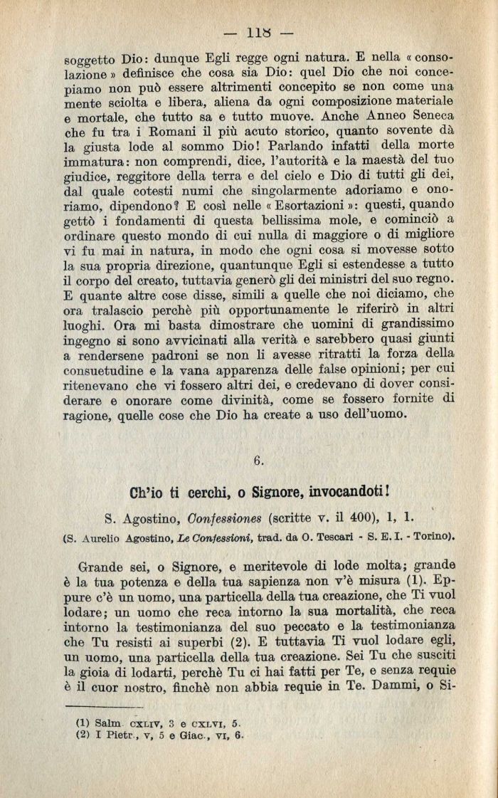 S. Agostino, Oonfessiones (scritte v. il 400), 1, 1. (S. Aurelio Agostino, Le Confessioni, trad. da 0. Tescari - S. E. I. - Torino).