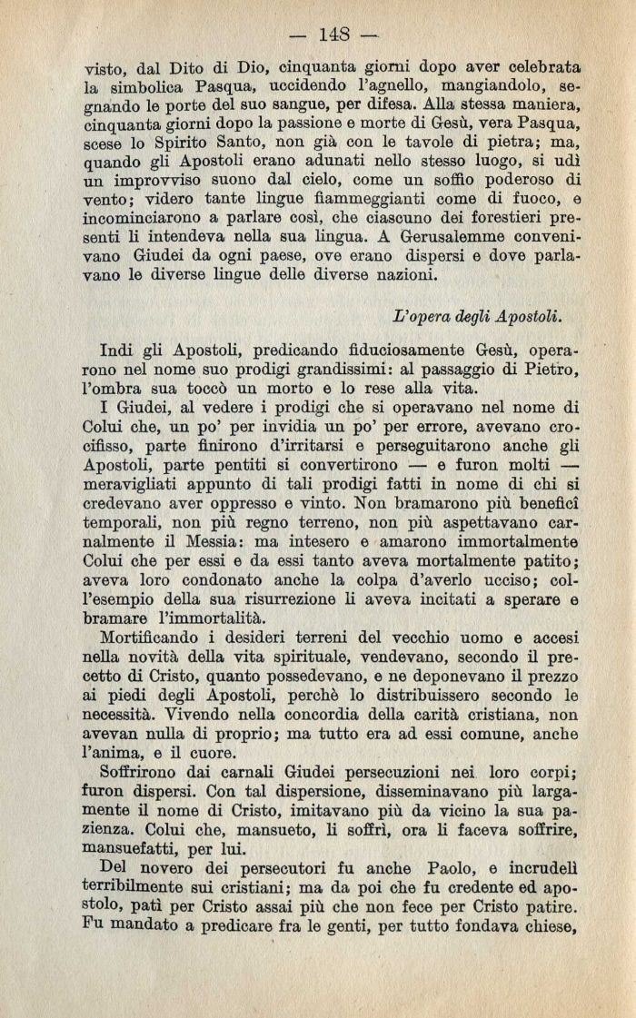 I Giudei, al vedere i prodigi che si operavano nel nome di Colui che, un po' per invidia un po' per errore, avevano crocifisso, parte finirono d'irritarsi e perseguitarono anche gli Apostoli, parte pentiti si convertirono — e furon molti — meravigliati appunto di tali prodigi fatti in nome di chi si credevano aver oppresso e vinto. Non bramarono più benefici temporali, non più regno terreno, non più aspettavano carnalmente il Messia: ma intesero e amarono immortalmente Colui che per essi e da essi tanto aveva mortalmente patito; aveva loro condonato anche la colpa d'averlo ucciso; col-l'esempio della sua risurrezione li aveva incitati a sperare e bramare l'immortalità.