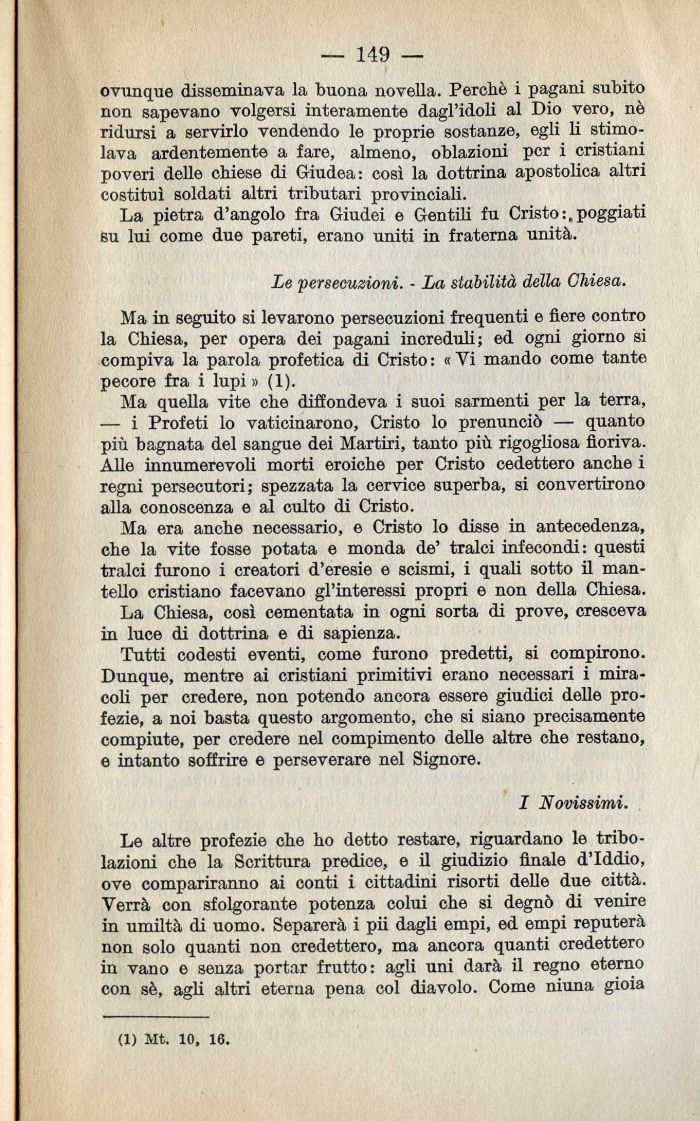 Ma in seguito si levarono persecuzioni frequenti e fiere contro la Chiesa, per opera dei pagani increduli; ed ogni giorno si compiva la parola profetica di Cristo : « Vi mando come tante pecore fra i lupi» (1).