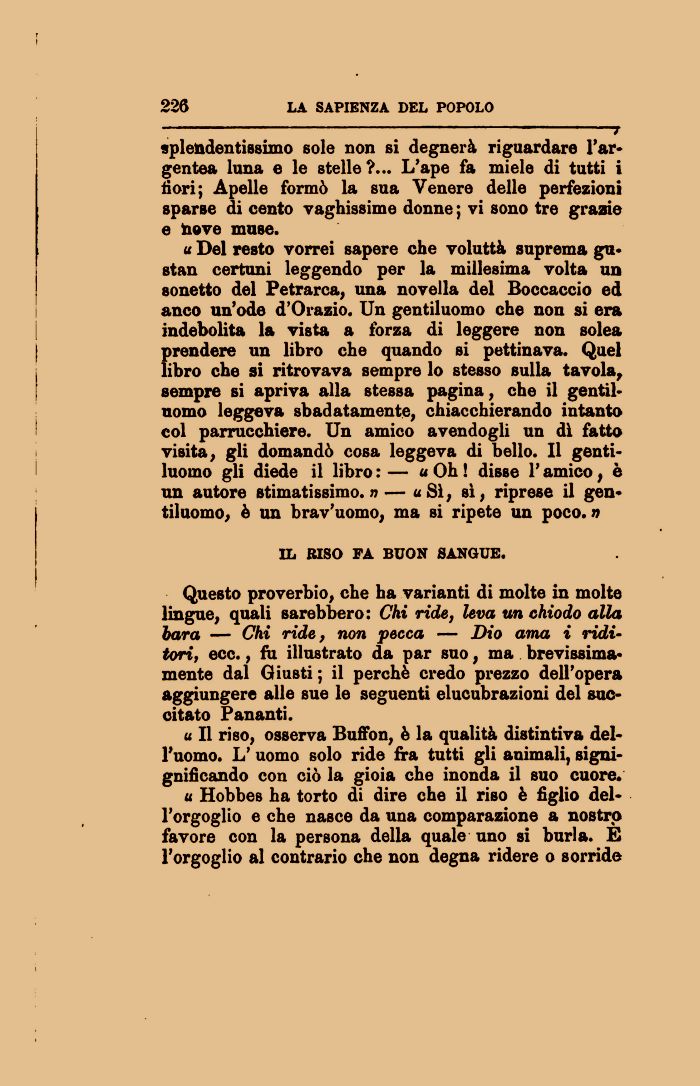 u II riso, osserva Buffon, è la qualità distintiva dell'uomo. L' uomo solo ride fra tutti gli animali, signi-gnificando con ciò la gioia che inonda il suo cuore.