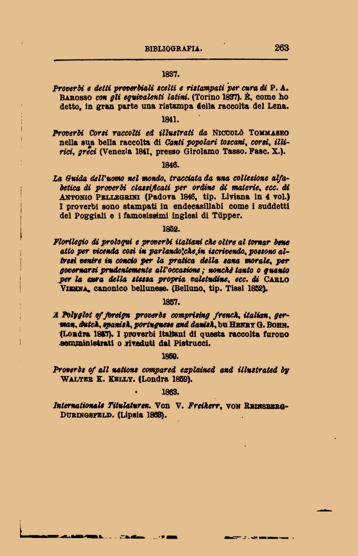 ProverH e detti proverbiali scelti e ristampati per cura di P. A. Barosso con gli equivalenti latini. (Torino 1837). È, come ho detto, in gran parte una ristampa della raccolta del Lena.