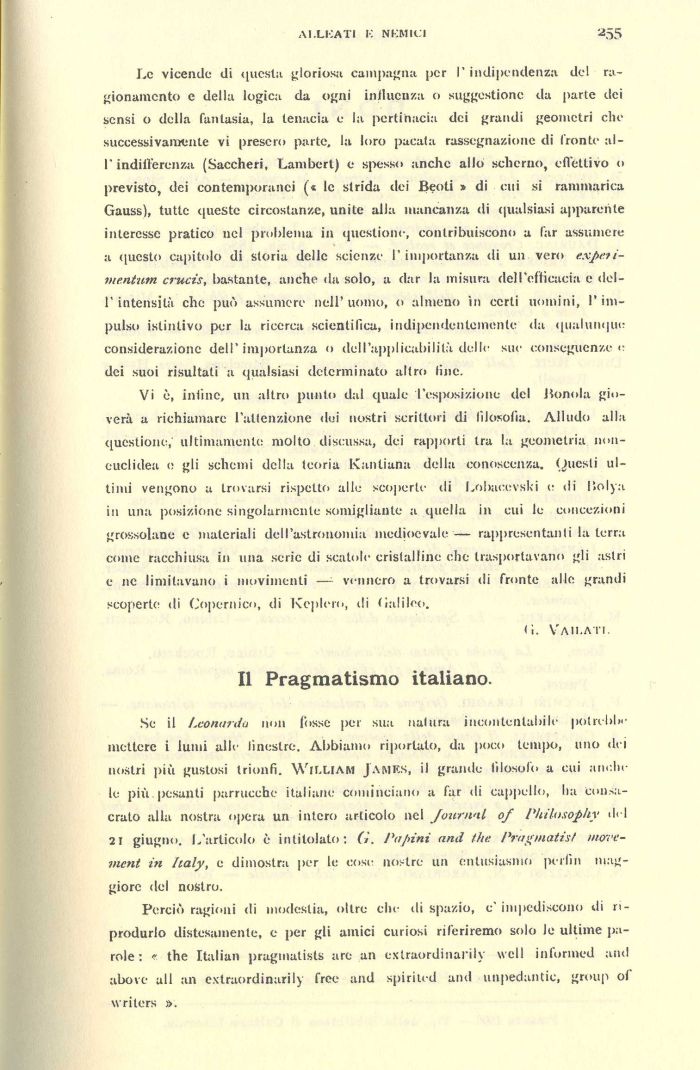 Perciò ragioni (li modestia, oltre che di spazio, c' impediscono di riprodurlo distesamente, e per gli amici curiosi riferiremo solo le ultime parole : <• the Italian pragmatisti» are an extraordinarily «eli inforined and ubo ve ali an extraordinarily free and spirited and impedantii:, group of writers ».