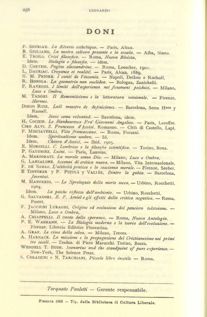 D. Cortesi. Pagine alessandrine. — Roma, Loescher, 1901. L. Dauriac. Croyance et realité. — Paris, Alcan, 1889.