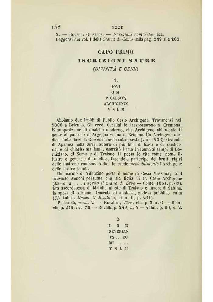 X. — Rovelli Giuseppe. — iscrizioni comasche, ecc.