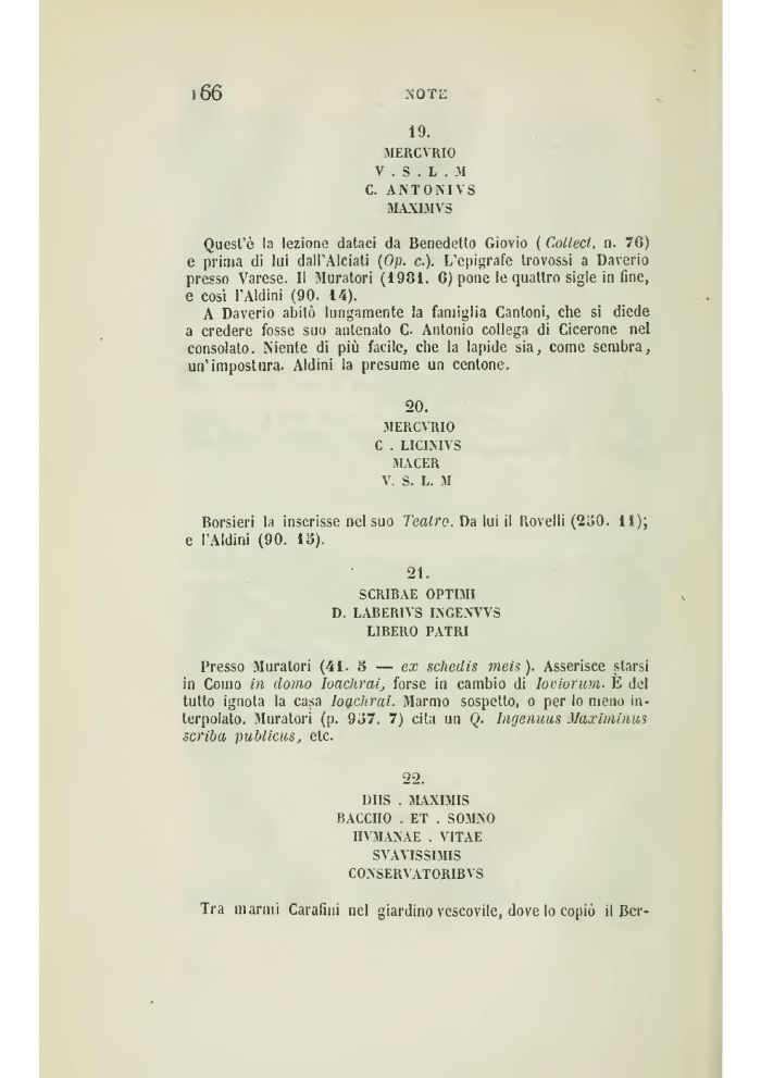 Presso Muratori (41. 5 — ex schedis ?neis). Asserisce starsi in Como in domo Ioachrai, forse in cambio di Ioviorum. È del tutto ignota la casa loychrai. Marmo sospetto, o per lo meno interpolato. Muratori (p. 937. 7) cita un Q. Ingenuus Maximinus scriba publicus, etc.