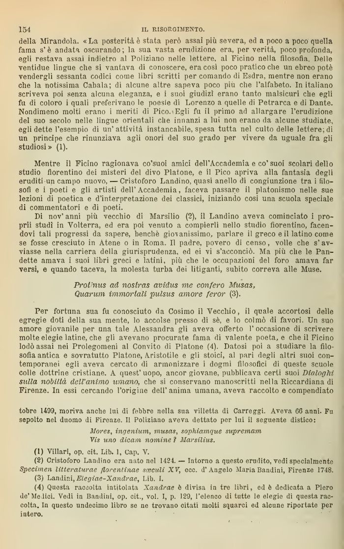 (2) Cristoforo Landino era nato nel 1424. — Intorno a questo erudito, vedi specialmente Specimen lìtteraturae florentinae sreculi XV, ecc. d'Angelo Maria Bandini, Firenze 1748.