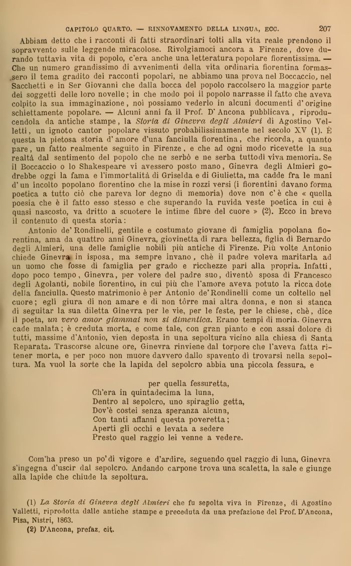 (1) La Storia di Ginevra degli Almieri che fu sepolta viva in Firenze, di Agostino Valletti, riprodotta dalle antiche stampe e preceduta da una prefazione del Prof. D'Ancona, Pisa, Bistri, 1863.