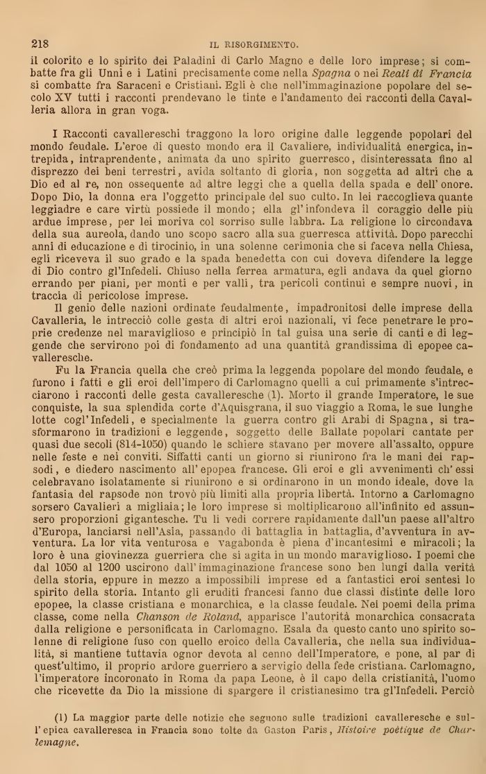 (1) La maggior parte delle notizie che seguono sulle tradizioni cavalleresche e sull'epica cavalleresca in Francia sono tolte da Gaston Paris, Histoire poètique de Char-lemagne»