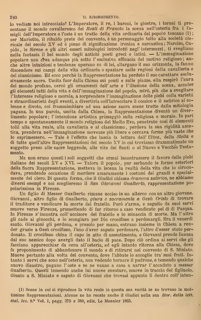 (1) Scene in cui si riproduce la vita reale in questa sua verità se ne trovano in moltissimo Rappresentazioni. Alcune ne ha recate anche il Giudici nella sua Star, della lett, ital, Icz. 8.a Voi. 1, pagg. 379 e 380, ediz. Le Monnier 1865.