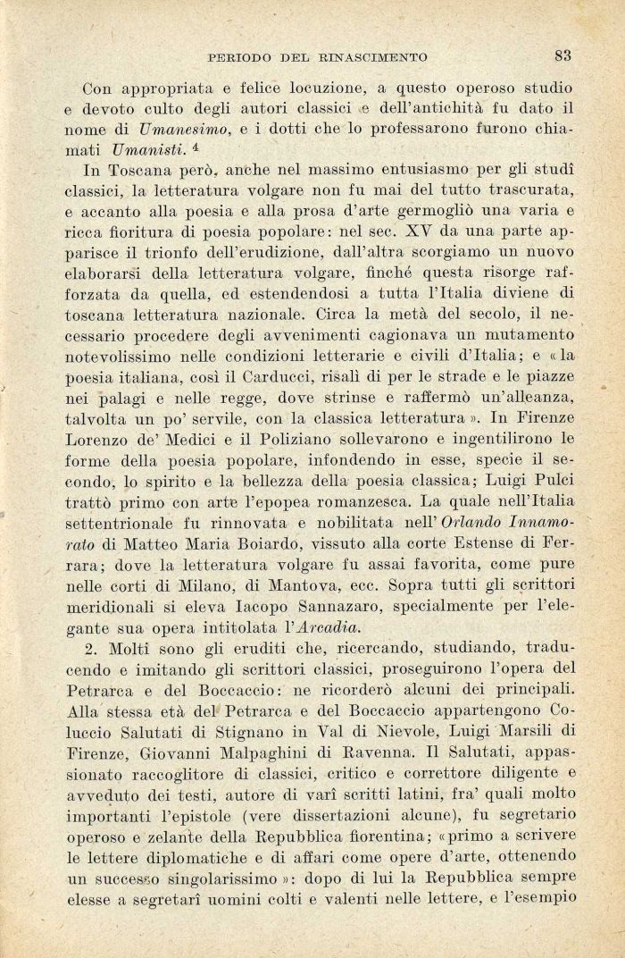 Con appropriata e felice locuzione, a questo operoso studio e devoto culto degli autori classici e dell'antichità fu dato il nome di Umanesimo, e i dotti che lo professarono furono chiamati Umanisti. 4