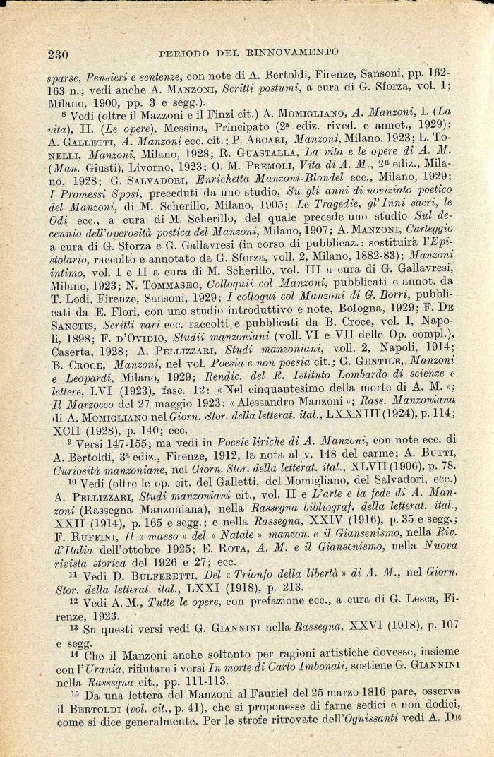 8 Vedi (oltre il Mazzoni e il Finzi cit.) A. Momigliano, A. Manzoni, I. (La vita), II. (Le opere), Messina, Principato (2a ediz. rived. e annot., 1929);